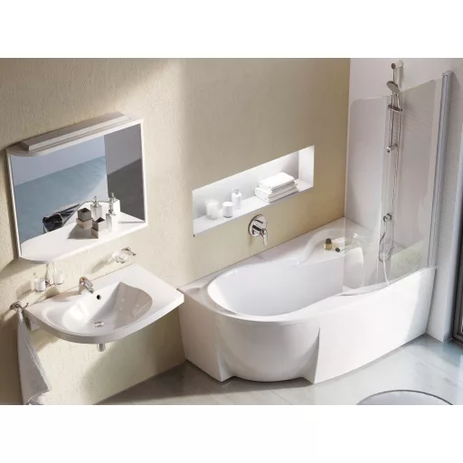 A Rosa 95 fürdőkád kiegészíthető a VSK2 vagy CVSK1 fürdőkád paravánnal. Kiegészítőként javasoljuk az előlapot, a fürdőkád túlfolyó készletet. A kád üvegszálas erősítéssel (LA) van ellátva. A kádhoz a fürdőszoba teljes termékkoncepciója kapcsolódik, amely magában foglalja a mosdót, a bútort, a tükröt és a csaptelepeket.