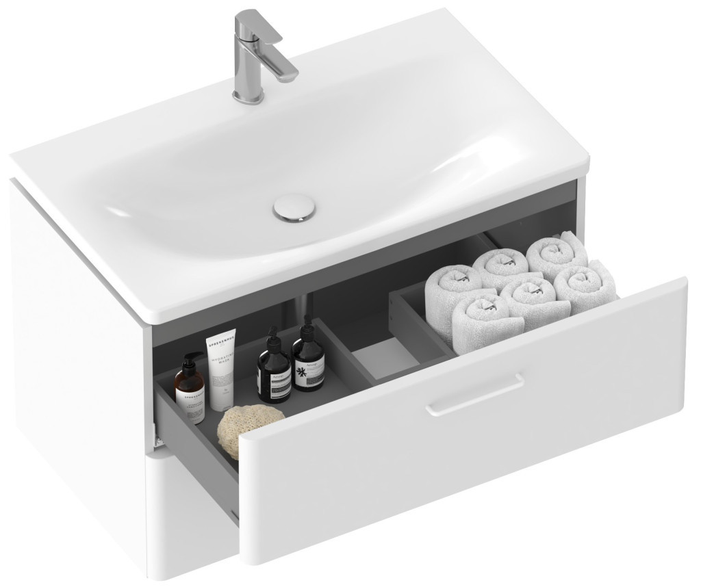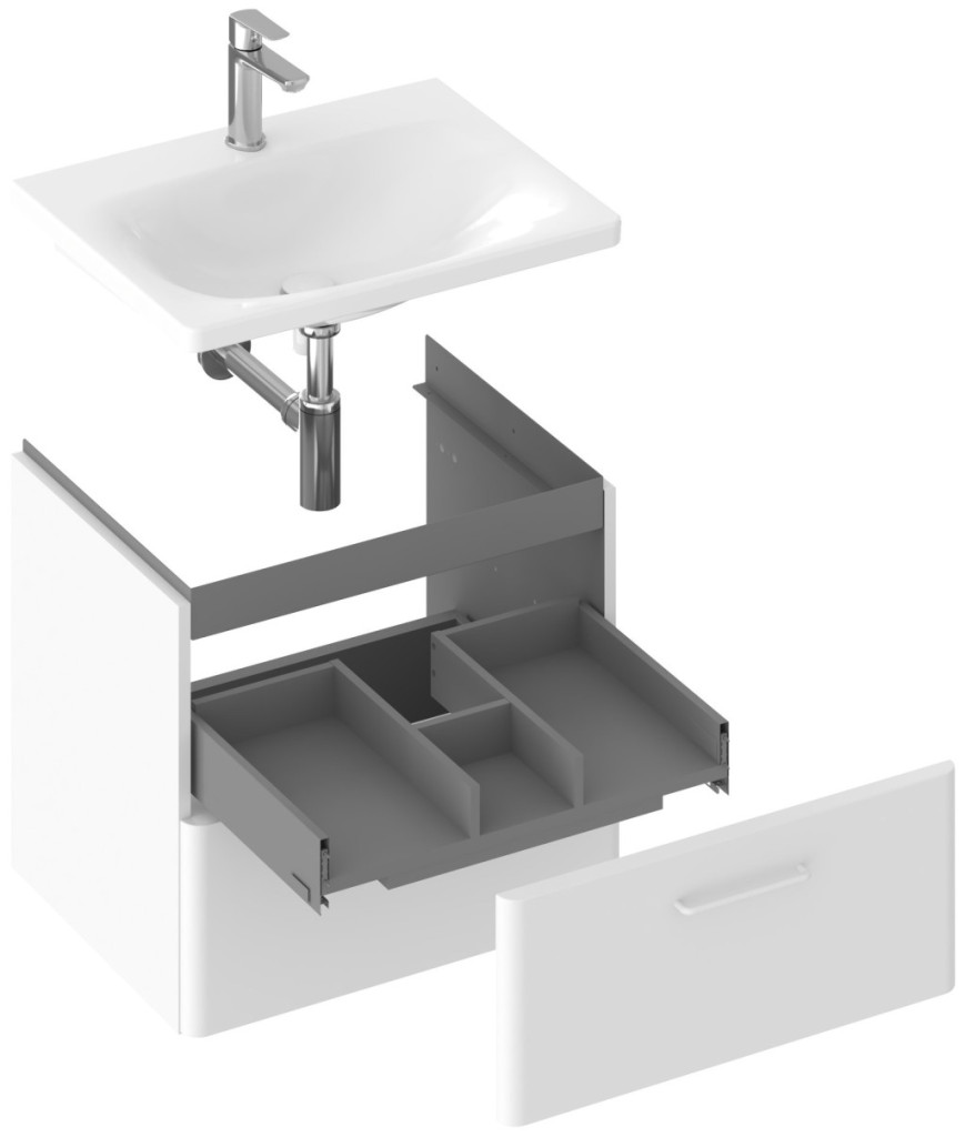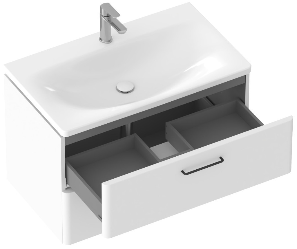 Az SD Balance II 80 függesztett szekrényt fehér színkivitelben kínáljuk. A szekrény belső tere grafit színű. A szekrény előfúrt furatokkal rendelkezik a fogantyúkhoz, amelyek nem részei a szekrénynek, és külön kell megvásárolni. Három színben kaphatók: fényes króm, fekete vagy fehér. Két praktikus fiók lassú lefutással elegendő tárolóhelyet biztosít. A szekrény a Balance 80 aláépíthető mosdóhoz van tervezve túlfolyó nélkül, fix kifolyóval ellátott mosdó szifonnal kiegészítve. A szekrényt kiegészítheti a Balance 80 fehér lappal és a laphoz való mosdóval, vagy a Balance 120 lappal, a Balance/Comfort 120 lap konzollal, a Balance fehér törölközőtartóval és a laphoz való mosdóval (pl. Uni / Uni Slim sorozat). Két szekrényt egymás mellett a Balance 120 lappal lehet kiegészíteni, így nagyvonalú tárolóhelyet és lerakó felületeket nyerhet.