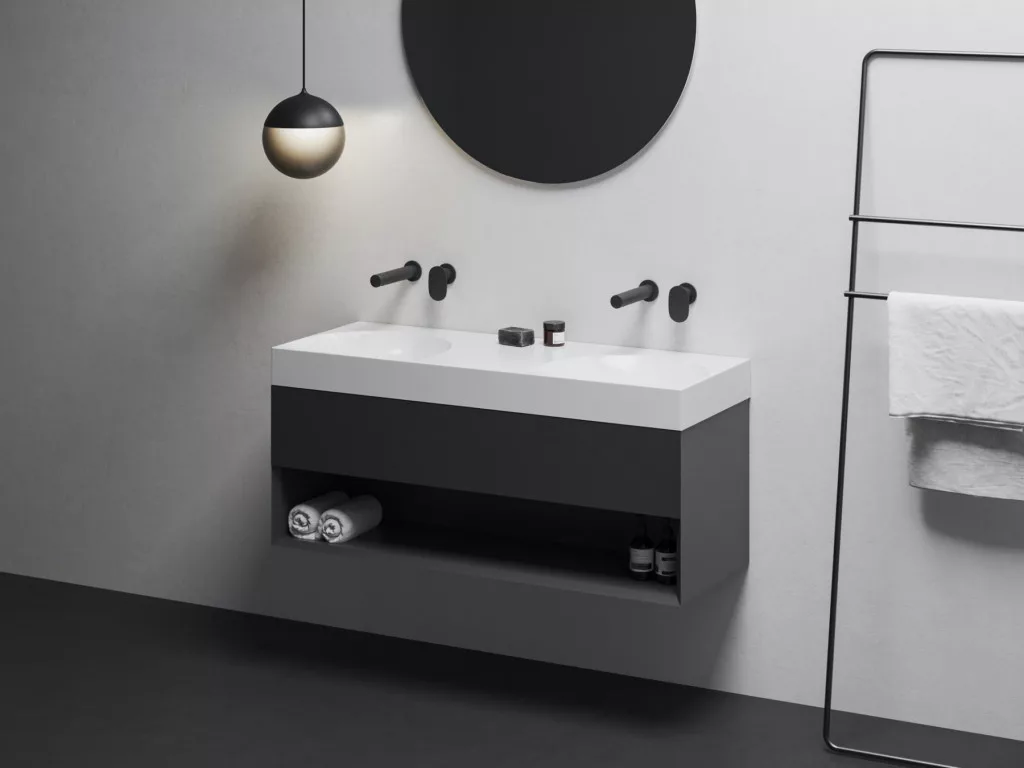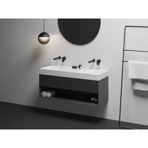 Az SD Lite 120 mosdószekrény Lite 120, Lite 120/80 B/J és Lite 120 duplamosdóhoz készült. Elülső fiókkal és polccal van felszerelve. A szekrényfiók az előlap alsó szélének meghúzásával nyílik. Összeszerelve szállítjuk, beleértve a rögzítőkészletet (csavarok, zsanérok, zárósapkák). A szekrény a falra van szerelve.