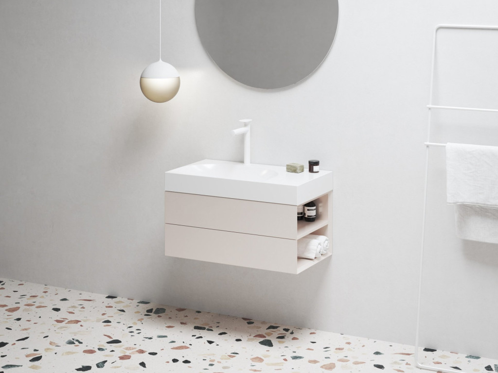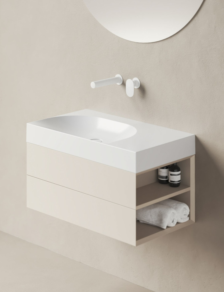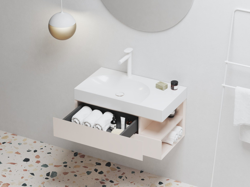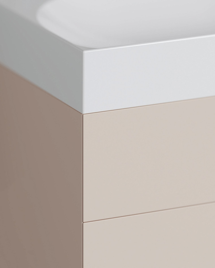 Az SD Lite 80 J-es mosdószekrény Lite 80/45 J-es és Lite 80/60 J-es mosdóhoz készült. Két első fiókkal és két oldalsó polccal van felszerelve. A szekrényfiók az elülső oldal szélének meghúzásával nyílik. Összeszerelve szállítjuk, beleértve a rögzítőkészletet (csavarok, zsanérok, zárósapkák). A szekrény a falra van szerelve.