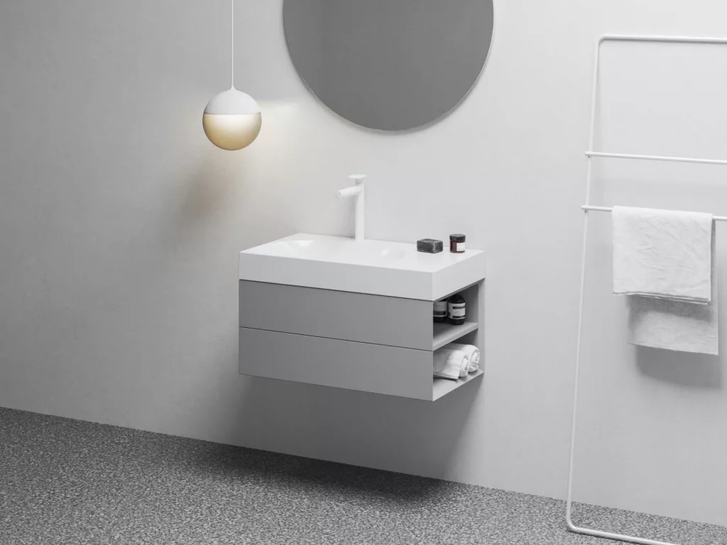 Az SD Lite 80 J-es mosdószekrény Lite 80/45 J-es és Lite 80/60 J-es mosdóhoz készült. Két első fiókkal és két oldalsó polccal van felszerelve. A szekrényfiók az elülső oldal szélének meghúzásával nyílik. Összeszerelve szállítjuk, beleértve a rögzítőkészletet (csavarok, zsanérok, zárósapkák). A szekrény a falra van szerelve.