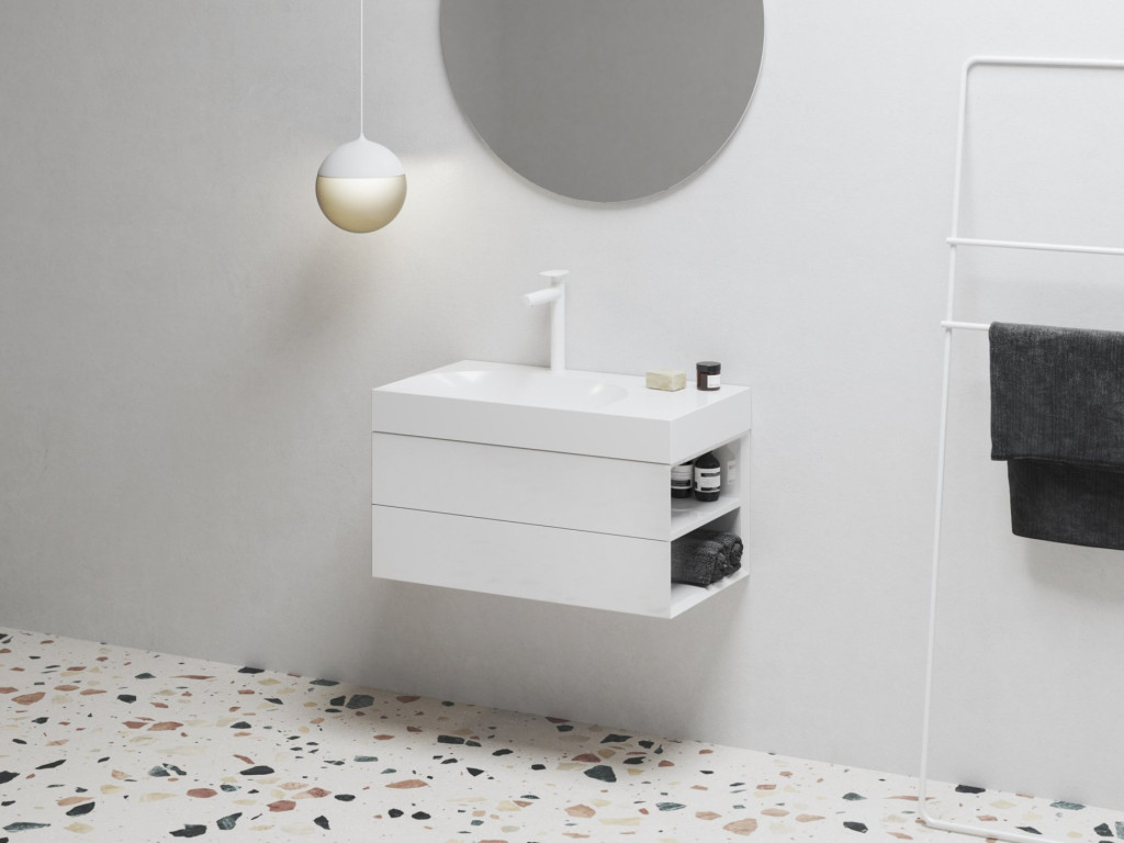 Az SD Lite 80 J-es mosdószekrény Lite 80/45 J-es és Lite 80/60 J-es mosdóhoz készült. Két első fiókkal és két oldalsó polccal van felszerelve. A szekrényfiók az elülső oldal szélének meghúzásával nyílik. Összeszerelve szállítjuk, beleértve a rögzítőkészletet (csavarok, zsanérok, zárósapkák). A szekrény a falra van szerelve.