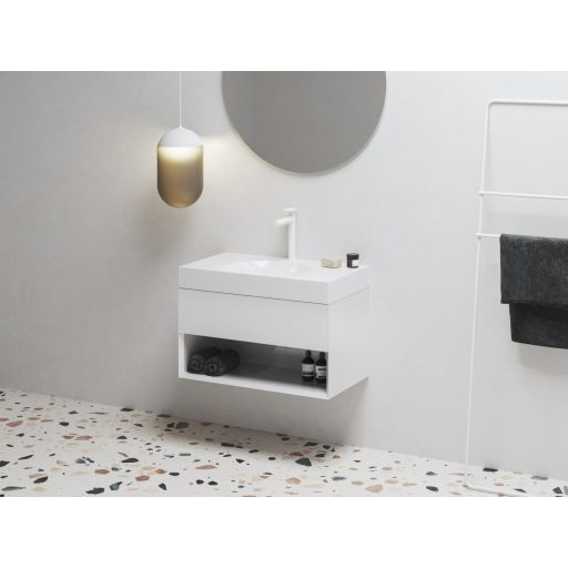 Az SD Lite 80 mosdószekrény Lite 80, Lite 80/45, Lite 80/45 B/J és Lite 80/60 B/J mosdóhoz készült. Elülső fiókkal és polccal van felszerelve. A szekrényfiók az előlap alsó szélének meghúzásával nyílik. Összeszerelve szállítjuk, beleértve a rögzítőkészletet (csavarok, zsanérok, zárósapkák). A szekrény a falra van szerelve.