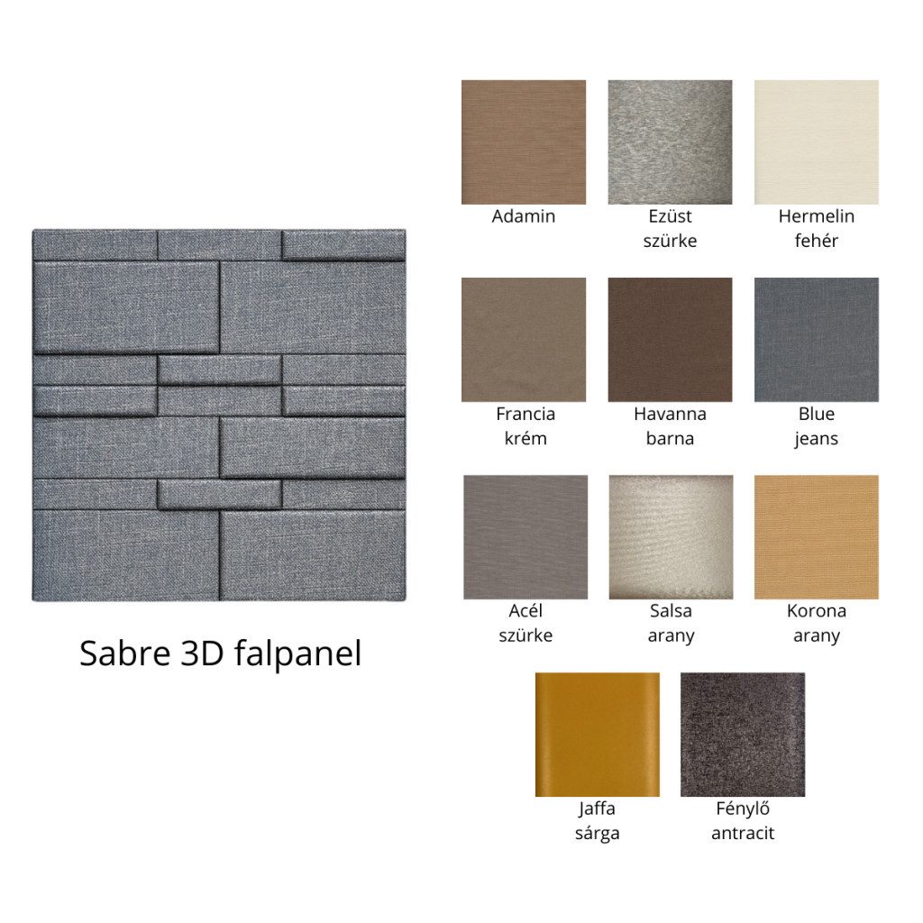 A Sabre 3D dekorpanel egy modern fali dekoráció, melynek alapanyaga egy magas minőségű, sűrű memóriahab, ez biztosítja a falpanelek törésállóságát, rugalmasságát, puhaságát. A falpanel hátulja egyenes, sima műbőr, mely habzáró rétegként funkcionál, felhelyezéskor erre kerül a ragasztó. A falpanel eleje, a dekorációs réteg, mely a választott kárpittól függően lehet műbőr vagy textilbőr, színében és textúrájában eltérő. A 3 rétegből felépülő falpanellel könnyedén tudunk magas minőségű, esztétikus 3D falfelületet létrehozni, mely a lakberendezési és belsőépítészeti trendekben rendkívül látványos megoldást kínál. Felhelyezése egyszerű, gyors, szakember segítsége nélkül is elvégezhető. Alapanyag: memóriahab Panelborítás: műbőr vagy textilbőr Szín: választható Panelvastagság: 1,2 cm Rögzíthetőség: ragasztás Tisztíthatóság: nedves törlőkendő vagy porszívó Kiszerelés: 10 db/doboz (3.6m2) 1 db falpanel súly: 0.87 kg Bizonylat: CE jelölt termék Felhelyezhetõ: Falra, mennyezetre, tapétára, bútorlapra Funkcionalitás: Tökéletesen kialakítható belõle ágyvég, TV fal vagy elõszoba fal Tulajdonság: Fúrható (fogas, akasztó helyéne kialakítása céljából), vágható,Hang-, és hõszigetelõ hatás 1 db falpanel nm-ben: 0,36nm Méret: 60x60 cm 1 nm: 3 db Sabre 3D falpanel A termék többféle színben kapható. Kérjük a rendelni kívánt színt tüntesse fel a rendelés véglegesítésekor a megjegyzés rovatunkban!