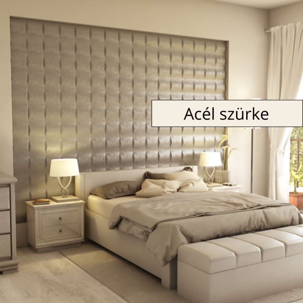 A Salta 3D dekorpanel egy modern fali dekoráció, melynek alapanyaga egy magas minőségű, sűrű memóriahab, ez biztosítja a falpanelek törésállóságát, rugalmasságát, puhaságát. A falpanel hátulja egyenes, sima műbőr, mely habzáró rétegként funkcionál, felhelyezéskor erre kerül a ragasztó. A falpanel eleje, a dekorációs réteg, mely a választott kárpittól függően lehet műbőr vagy textilbőr, színében és textúrájában eltérő. A 3 rétegből felépülő falpanellel könnyedén tudunk magas minőségű, esztétikus 3D falfelületet létrehozni, mely a lakberendezési és belsőépítészeti trendekben rendkívül látványos megoldást kínál. Felhelyezése egyszerű, gyors, szakember segítsége nélkül is elvégezhető. Alapanyag: memóriahab Panelborítás: műbőr vagy textilbőr Szín: választható Panelvastagság: 1,6 cm Rögzíthetőség: ragasztás Tisztíthatóság: nedves törlőkendő vagy porszívó Kiszerelés: 10 db/doboz (1,6m2) 1 db falpanel súly: 0.42 kg Bizonylat: CE jelölt termék Felhelyezhetõ: Falra, mennyezetre, tapétára, bútorlapra Funkcionalitás: Tökéletesen kialakítható belõle ágyvég, TV fal vagy elõszoba fal Tulajdonság: Fúrható (fogas, akasztó helyéne kialakítása céljából), vágható,Hang-, és hõszigetelõ hatás 1 db falpanel nm-ben: 0,16nm Méret: 40x40 cm 1 nm: 7 db Salta 3D falpanel Ajánlott ragasztómennyiség (Tubus/panel): 1 tubus ragasztó kb. 10 db panelhez elegendő A termék többféle színben kapható. Kérjük a rendelni kívánt színt tüntesse fel a rendelés véglegesítésekor a megjegyzés rovatunkban!