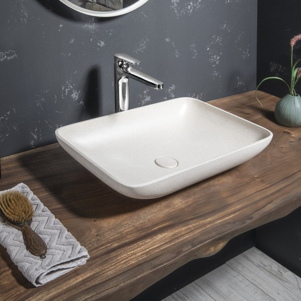 Sapho Infrane beton mosdó lefolyóval 57x37 cm