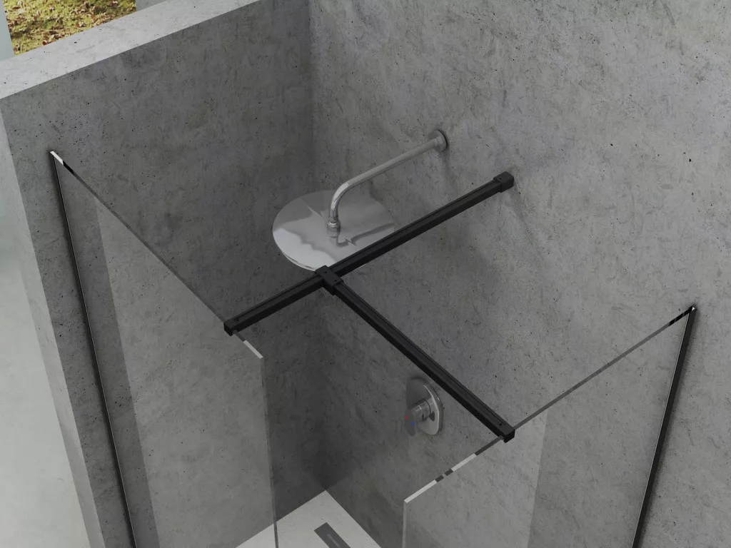 Fém összekötő vég a Walk-In Double Wall zuhanykabin merevítőinek összekapcsolására fekete kivitelben.