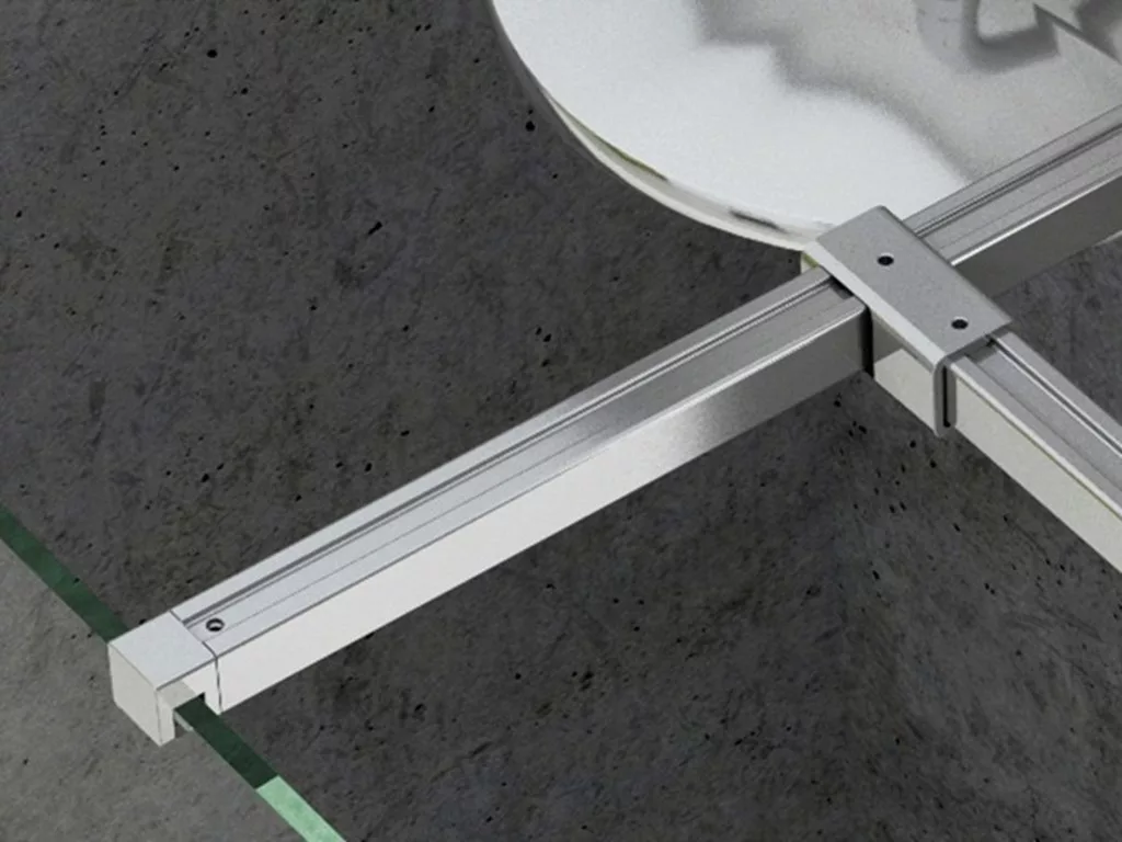 • A T-alakú fém összekötő elem a Walk-In Double Wall zuhanykabin merevítőinek összekötésére szolgál.