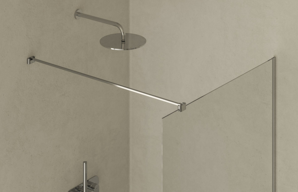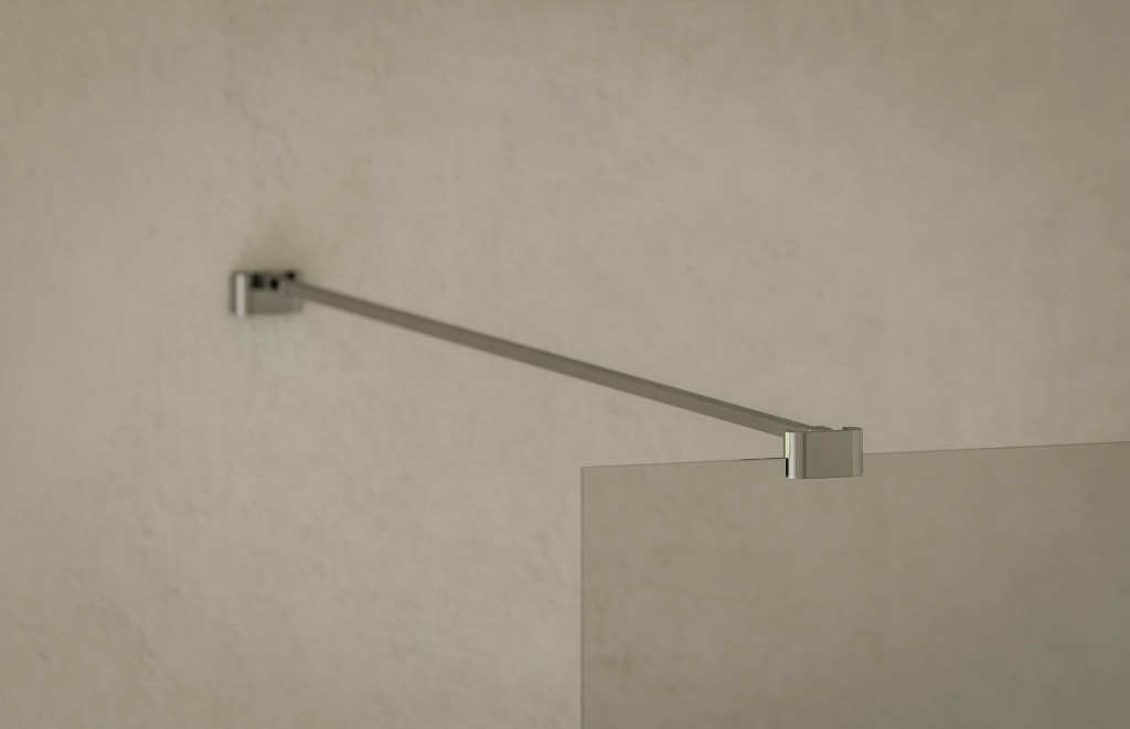 A Walk-In Air Wall zuhany 6 mm vastag edzett biztonsági üvegből és fém alkatrészekből készül. A termék stabilitását egy 120 cm hosszúságú merevítő biztosítja, amely a bejárat szükséges szélessége szerint tetszőlegesen rövidíthető.