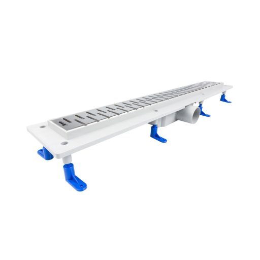Beltéri zuhanyfolyóka medium ráccsal. A rács anyaga rozsdamentes acél. Könnyű tisztíthatóság, időtálló kivitel. A lefolyórendszer ellenáll a korróziónak. Az alkalmazott felületképzések miatt a tisztítása könnyen elvégezhető.