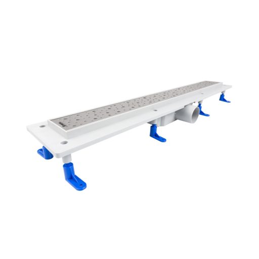 Beltéri zuhanyfolyóka drops ráccsal. A rács anyaga rozsdamentes acél. A terméket könnyű tisztíthatóság, időtálló kivitel jellemzi. A lefolyórendszer ellenáll a korróziónak. Az alkalmazott felületképzések miatt a tisztítása könnyen elvégezhető.