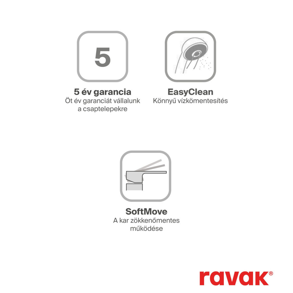 - alkalmas: minden Ravak zuhanykabinhoz; minden Ravak fali, kád, zuhany és termosztatikus csaphoz
