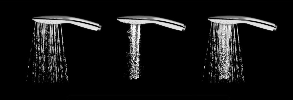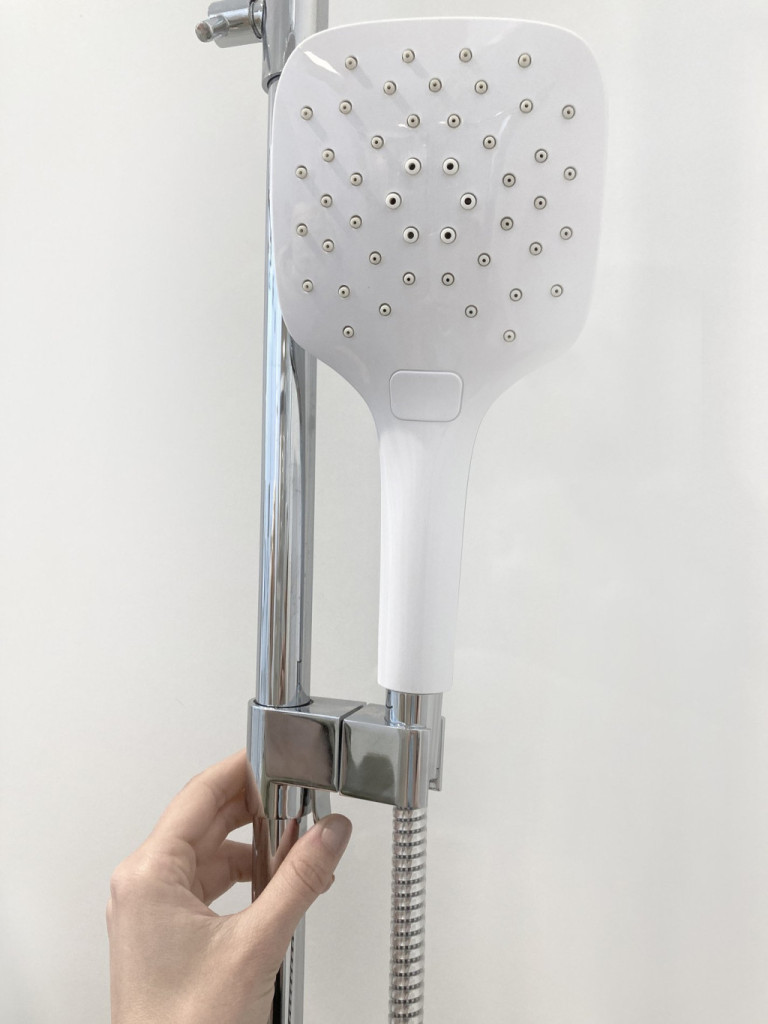 - kézi zuhany: 120 mm átmérőjű, fehér ABS műanyag, 3 funkció - Jet, Rain, Jet+Rain