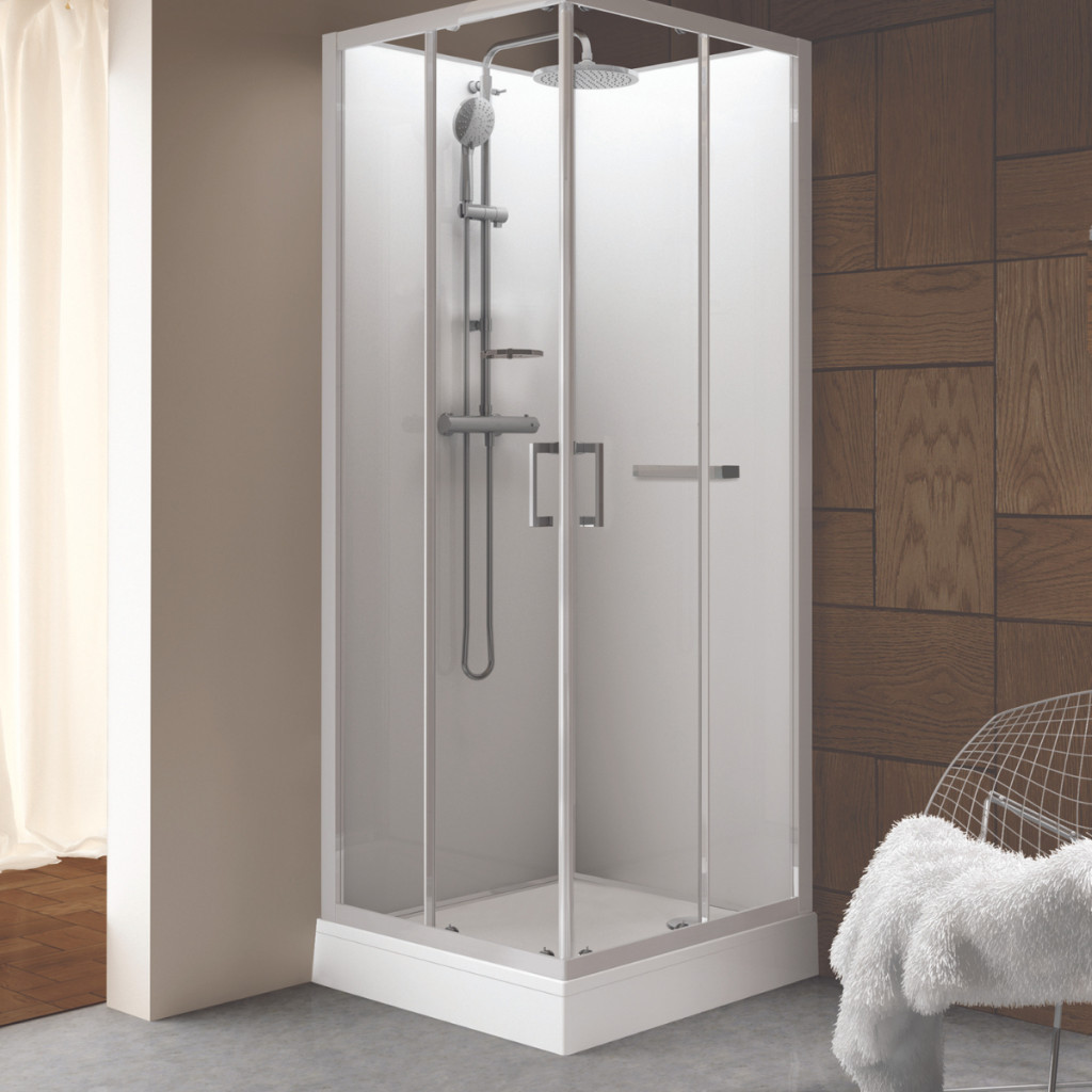 Négyoldalról zárt (négyfalas) zuhanykabinok kpl-KCKN/BASIC-80-S W18 üveggel / fehér kerettel és fehér hátfallal