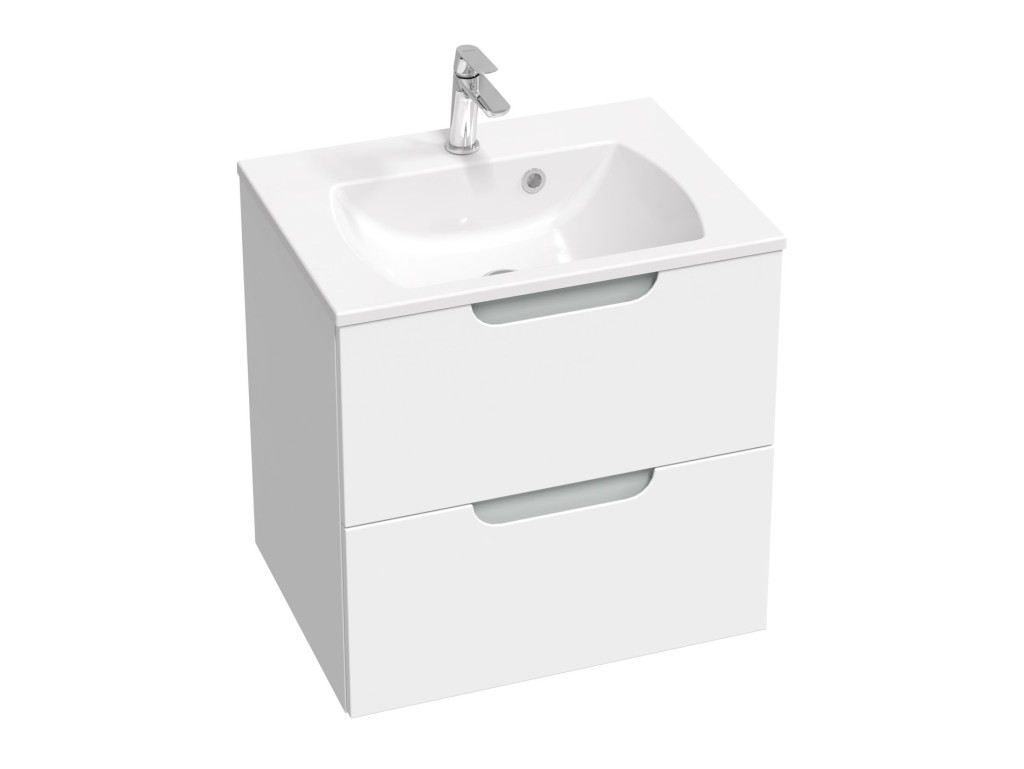 A Classic II 600 mosdó alatti szekrény a Classic II 600 mosdó alá való. Két magas fiókkal rendelkezik nagy tárolóhellyel, teljes kihúzással és lassú lefutással. Összeszerelt állapotban szállítják, szerelési készlettel (csavarok, zsanérok, dugók). A szekrény a falra szerelhető.