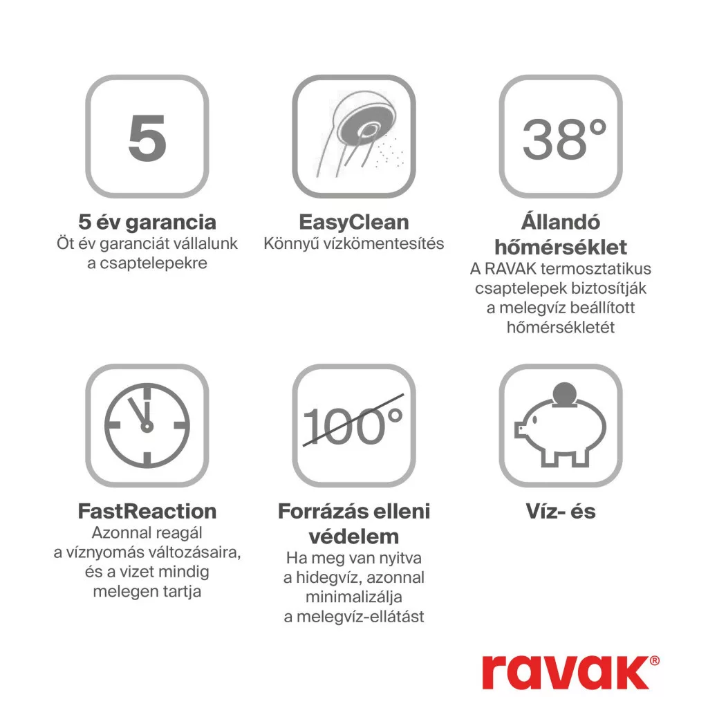 A fürdőszoba egységes megoldásához és design összhangjához javasoljuk, hogy kombinálja az Espirit csaptelepekkel azonos színkivitelben. A külső tisztításhoz javasoljuk a Ravak Cleaner Chrome tisztítószert használni.