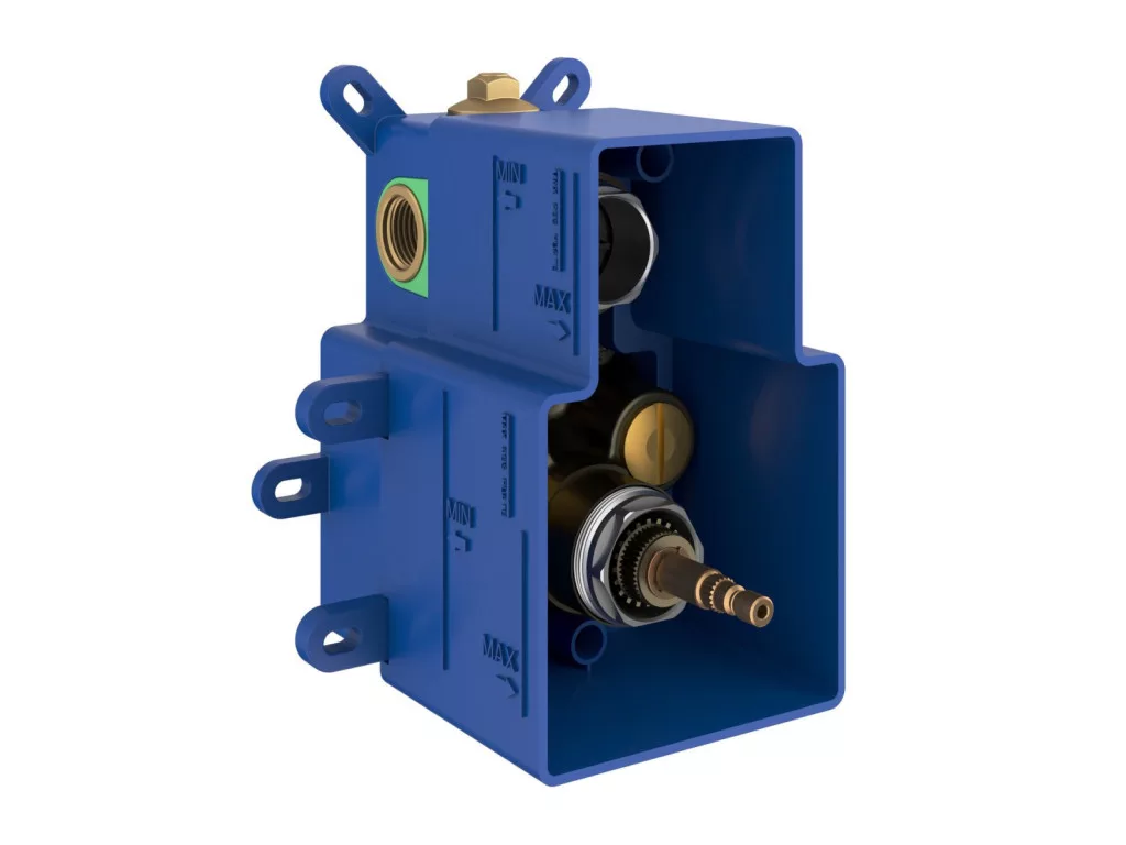 A termosztatikus beépített csaptelep az R-box telepítőtesthez készült, amely jelentősen megkönnyíti a munkát és javítja a teljes munka eredményét. A fürdőszoba egységes megoldásának és design harmóniájának érdekében javasoljuk, hogy kombinálja az Espirit csaptelepekkel azonos színkivitelben.