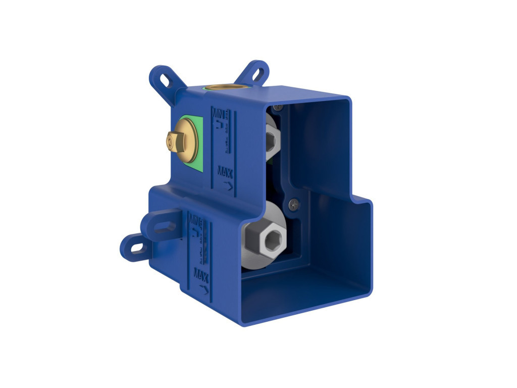 A beépített csaptelep alaptestje, az RB 07E.50, nem tartozék, és külön meg kell vásárolni. Az R-box tartalmazza a falhoz rögzítéshez szükséges anyagot, nem tartalmazza a vízvezeték csatlakozásokat vagy más vízvezeték-szerelvényeket. Az R-box tartalmazza a műanyag munkavédelmi burkolatot a csaptelep belső testéhez, amely az R-boxban van elhelyezve, és még a csaptelep felső részének leszerelésekor is teljesen működőképesen tartja a fürdőszoba vízellátását. Ezen műanyag részen keresztül a vízellátást szellőztetni lehet, vízleállítás nélkül.